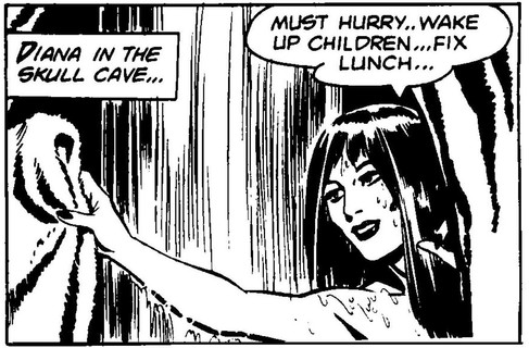 In 1970 in the Sunday story "Alexander's Diamond Cup" and again in 1981 in the Sunday story "Kit and the Little People" by both Sy Barry and Lee Falk, the shower was shown again but this time inside the Skull Cave for the first time. Again, Diana has complained that the water was cold.